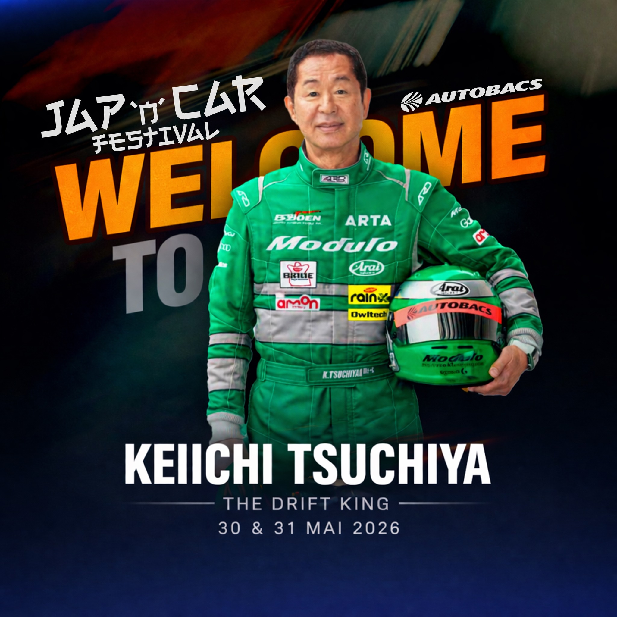 Le Drift King lui-même, Keiichi Tsuchiya, sera présent sur le stand Autobacs à l’occasion du Jap'n Car Festival 2026.